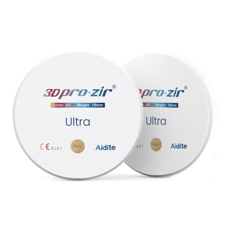 Le disque 3D Pro Zir Ultra Aidite représente une nouvelle génération de zircone dentaire multicouche, pensée pour répondre aux exigences des laboratoires modernes. Il associe intelligemment résistance mécanique élevée, esthétique biomimétique et rapidité de production, afin d’optimiser chaque étape du flux de fabrication.