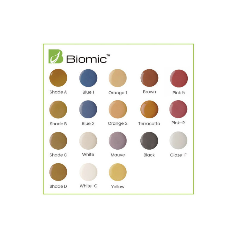 Avec une compatibilité universelle, la gamme Biomic™ s’utilise sur tous les types de matériaux céramiques (zircone, disilicate, pressé, stratifié…) sans protocole spécifique ni teintes propriétaires. Les pâtes 2D offrent une application intuitive, une excellente stabilité et une fluorescence proche de celle de la dent naturelle.