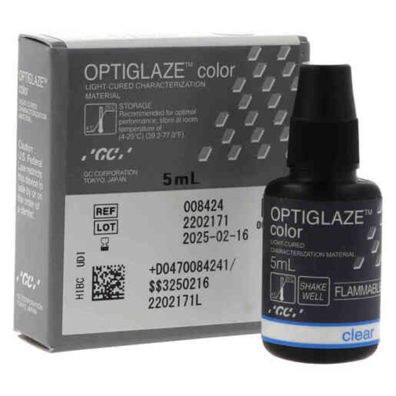 GC Optiglaze Color Clear 5 ml est un vernis photopolymérisable destiné à la caractérisation interne et de surface des restaurations en matériaux polymères.